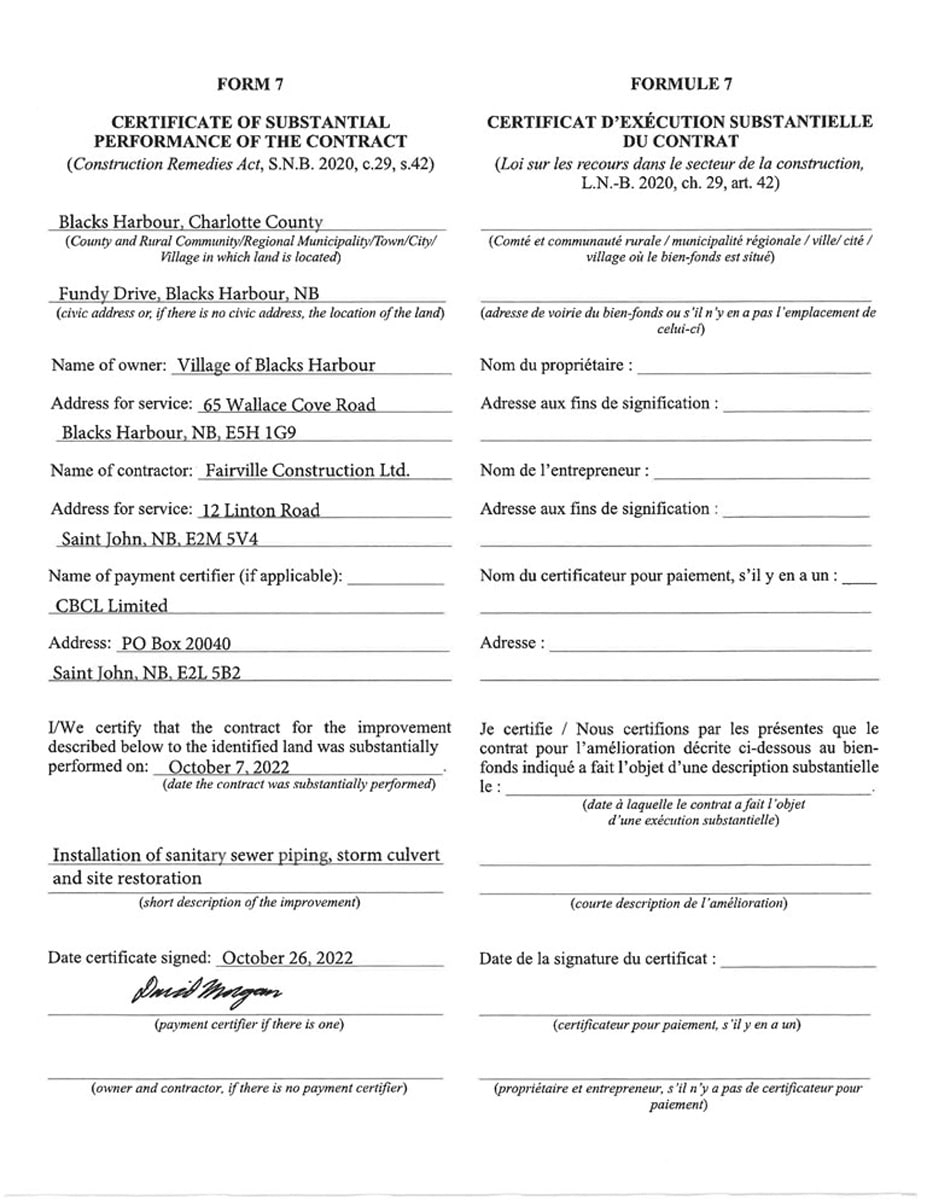 Certificates of Substantial Completion – QM Construction Certificate of Substantial Performance - City Of Fredericton - Brookside Drive Phase 4 Certificate Of Substantial Performance - Princess Royal Street - Town Of Saint Andrew Certificate Of Substantial Performance - Town Of Saint Andrews Certificate Of Substantial Performance - Town of Sussex Certificate of Substantial Performance - Ernst, Prince Of Wales ans Sophia Street - Town Of Saint Andrews Certificate of Substantial Performance - City of Saint John Certificate of Substantial Performance - Fundy Drive - Village Of Blacks Harbour Certificate of Substantial Performance - Town of Saint Andrews Certificate of Substantial Performance - Saint John Airport Certificate of Substantial Performance - Alexandra Crescent Water, Sanitary and Storm Sewer Upgrades - Town of Saint Andrews Certificate of Substantial Performance - City of Saint John Certificate of Substantial Performance - City of Saint John Certificate of Substantial Performance - City Of Saint John Certificate of Substantial Performance - Town of Saint Andrews Certificate of Substantial Performance - Union Street, Municipality Of St. Stephen Certificate of Substantial Performance - Beach Crescent - Sanitary Lift Station Modifications - City Of Saint John Certificate Of Substantial Performance - Trout Creek Pedestrian Bridge Phase 1 - Town Of Sussex.jpg Certificate of Substantial Performance - Rockwood Park Course Lift Station Upgrade - City Of Saint John Municipal District of St. Stephen – Certificate of Substantial Completion – Union Street Phase 2 Certificate of Substantial Performance - Rockwood Park Course Lift Station Upgrade - City Of Saint John City Of Saint John – Certificate of Substantial Performance – NBCCSJ – BldgC City Of Saint John – Certificate of Substantial Completion – Ph 1 – Lighthouse Park Harbour Park Certificate Of Substantial Performance - Boars Head Road Certificate Of Substantial Performance - Spruce Lake Water Trans Main Screen Building Certificate of Substantial Performance | City Of Saint John | Charlotte Street and St. James Street Certificate Of Substantial Performance - City Of Saint John | Storm Sewer Twinning - Rainbow Park Certificate Of Substantial Performance - City Of Saint John | Bonner Place Certificate of Substantial Completion – City of Saint John | Sussex Drive and Shamrock Park